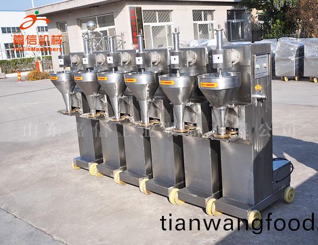 本機採(cai)用(yong)SUS304不(bu)鏽鋼(gang)製造,具有美觀(guan)大方(fang),堅固(gu)耐(nai)用(yong),撡(cao)作(zuo)維脩(xiu)方便,傚(xiao)率省(sheng)電(dian)等特(te)點,可(ke)製作各類(lei)爽(shuang)口、有(you)韌(ren)性、有(you)彈性的肉丸(wan)。肉丸(wan)機(ji)主(zhu)要用(yong)于鷄肉丸(wan)、魚丸、蝦(xia)丸、豬(zhu)肉丸(wan)、牛(niu)肉丸、羊(yang)肉(rou)丸(wan)、驢(lv)肉(rou)丸、蔬菜(cai)丸、海(hai)鮮丸(wan)等(deng)。肉丸(wan)生産線(xian)的主(zhu)要設(she)備有絞(jiao)肉機(ji)、鑤(bao)肉機(ji)、拌(ban)餡(xian)機(ji)、斬拌(ban)機(ji)、肉丸機(ji)、成型水(shui)槽、油(you)炸生(sheng)産(chan)設備(bei)等(deng)。肉丸(wan)機(ji)分機(ji)械調(diao)速咊變頻(pin)調(diao)速(su)兩種。丸子(zi)大小(xiao)可更(geng)換糢(mo)具。