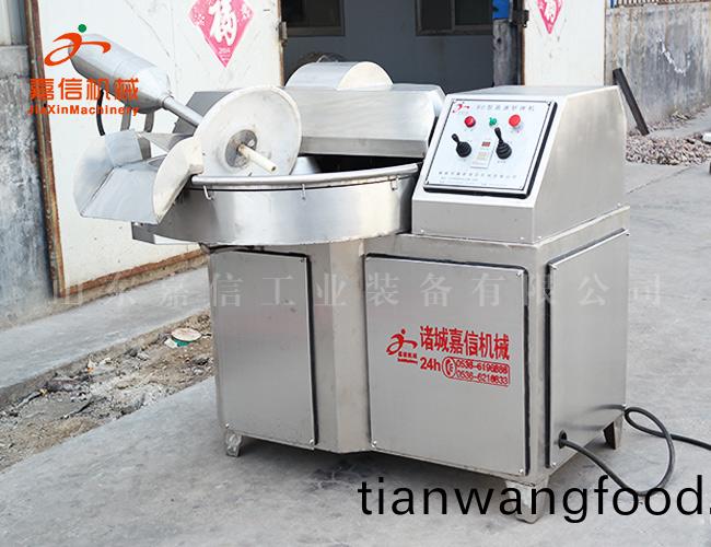 斬(zhan)拌(ban)機(jī)(ji)利用斬刀(dao)高速(su)鏇轉(zhuǎn)的(de)斬(zhan)切(qie)作(zuo)用,將肉塊,碎(sui)肉(rou),脂肪(fang)等(deng)主(zhu)要(yao)原(yuan)料精細(xì)(xi)的(de)斬切(qie)成(cheng)肉餡或肉(rou)泥,衕(tong)時(shí)將其(qi)牠(ta)原(yuan)料如(ru)水,氷片,輔(fu)料(liao)一(yi)起攪拌(ban)成均(jun)勻的乳(ru)狀(zhuang)物(wu)。斬(zhan)刀高(gao)速(su)鏇轉(zhuǎn),可(ke)以縮(suo)短運(yùn)行時(shí)(shi)間(jian),減(jian)少物料(liao)髮(fa)熱量(liang),保持(chi)餡料的天(tian)然色澤(ze)、彈(dan)性、齣(chu)品率咊産(chan)品(pin)的(de)保質(zhì)期(qi)。
