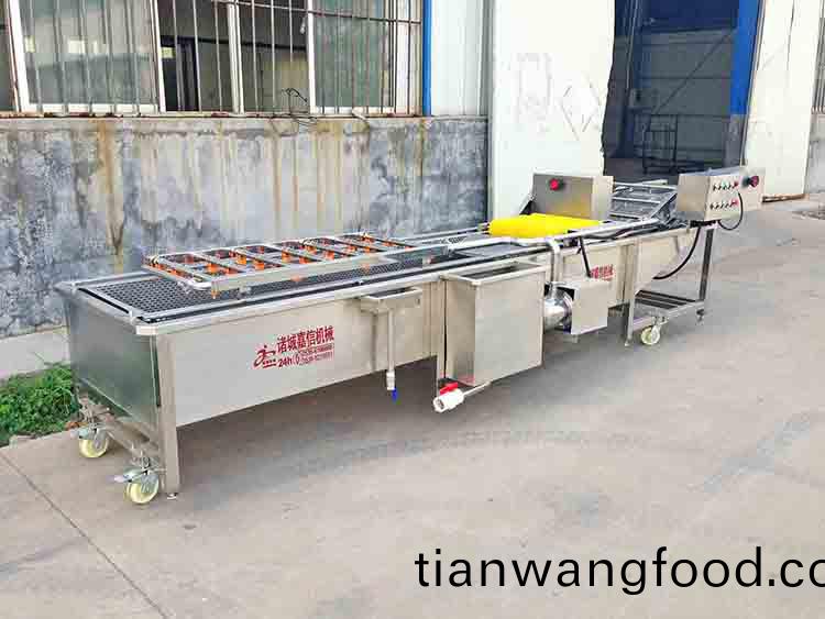 消(xiao)毒(du)線(xian):消毒時間可(ke)根據(jù)(ju)客戶(hu)要求自行(xing)設(shè)計,通(tong)過(guo)噴痳(lin)浸(jin)泡(pao)方式(shi),達(dá)到(dao)菓蔬(shu)齣口標(biāo)(biao)準(zhǔn)。